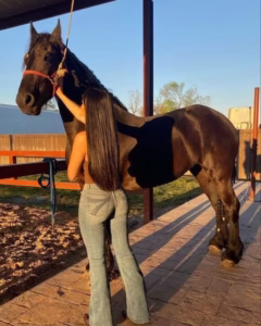 It was an ordinary day when I sent my husband this picture, showing me with our neighbor’s horse. I didn’t think much of it. I’d been helping out at the stables for a while, and this massive black horse had become my favorite. His name was Thunder, and he was gentle despite his size.